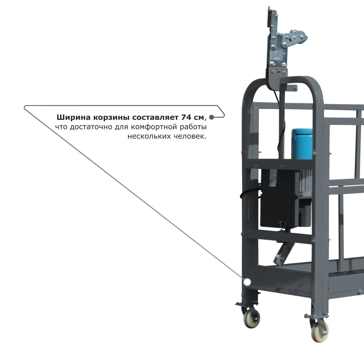 • Ширина корзины составляет 74 см, что достаточно для комфортной работы нескольких человек.